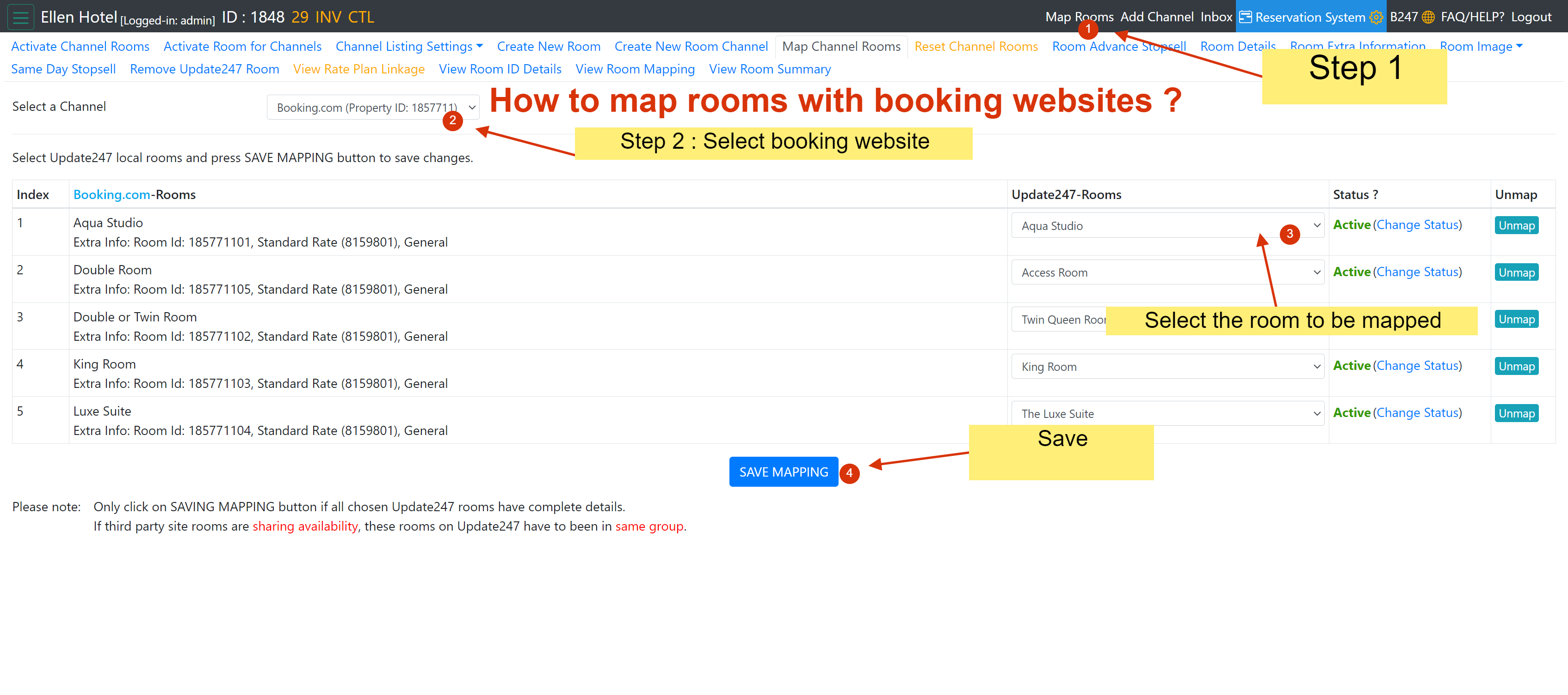 4) How to map rooms with booking websites?